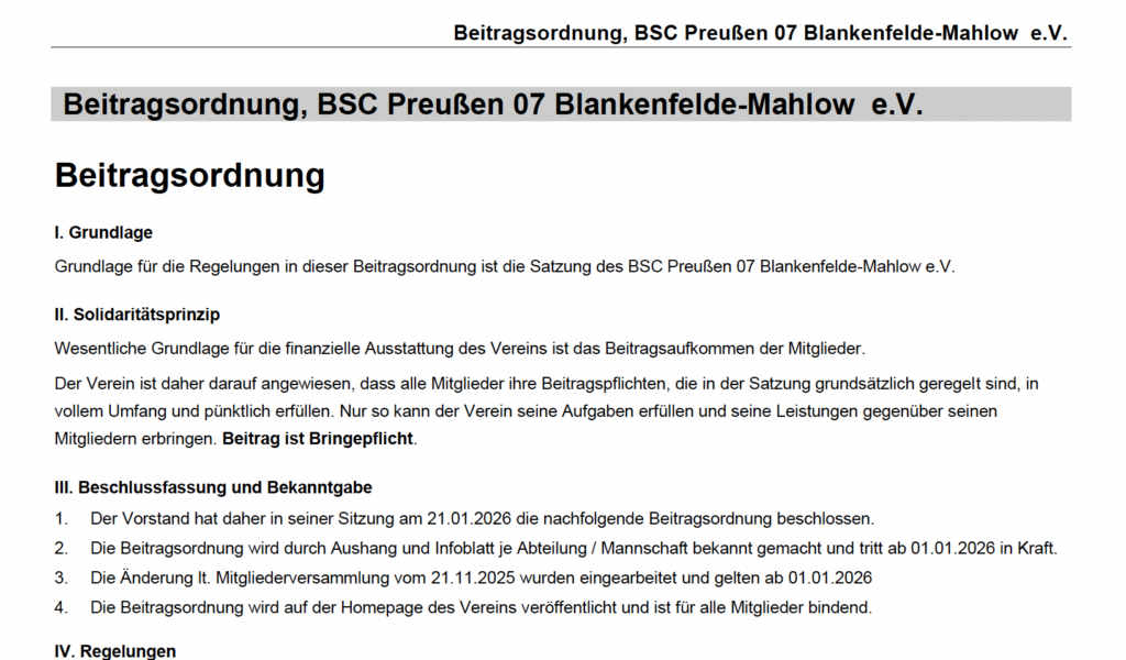 Dafür wurde die Beitragsordnung durch den Vorstand, entsprechend Satzung des Vereins, überarbeitet und in der Vorstandssitzung vom 21.01.2026 einstimmig beschlossen.